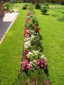 Рабатки имеют одинаковую суть, но совершенно иное строение, нежели клумбы. Рабаткой принято называть узкий (от 40-250 см.) продолговатый цветник, который обрамляет дорожки, или какие либо постройки или ландшафтные участки. Рабаткой так же называется цветочная полоса, врезанная в газон. От бордюра рабатку отличает большое многообразие используемых цветочных культур и растений.